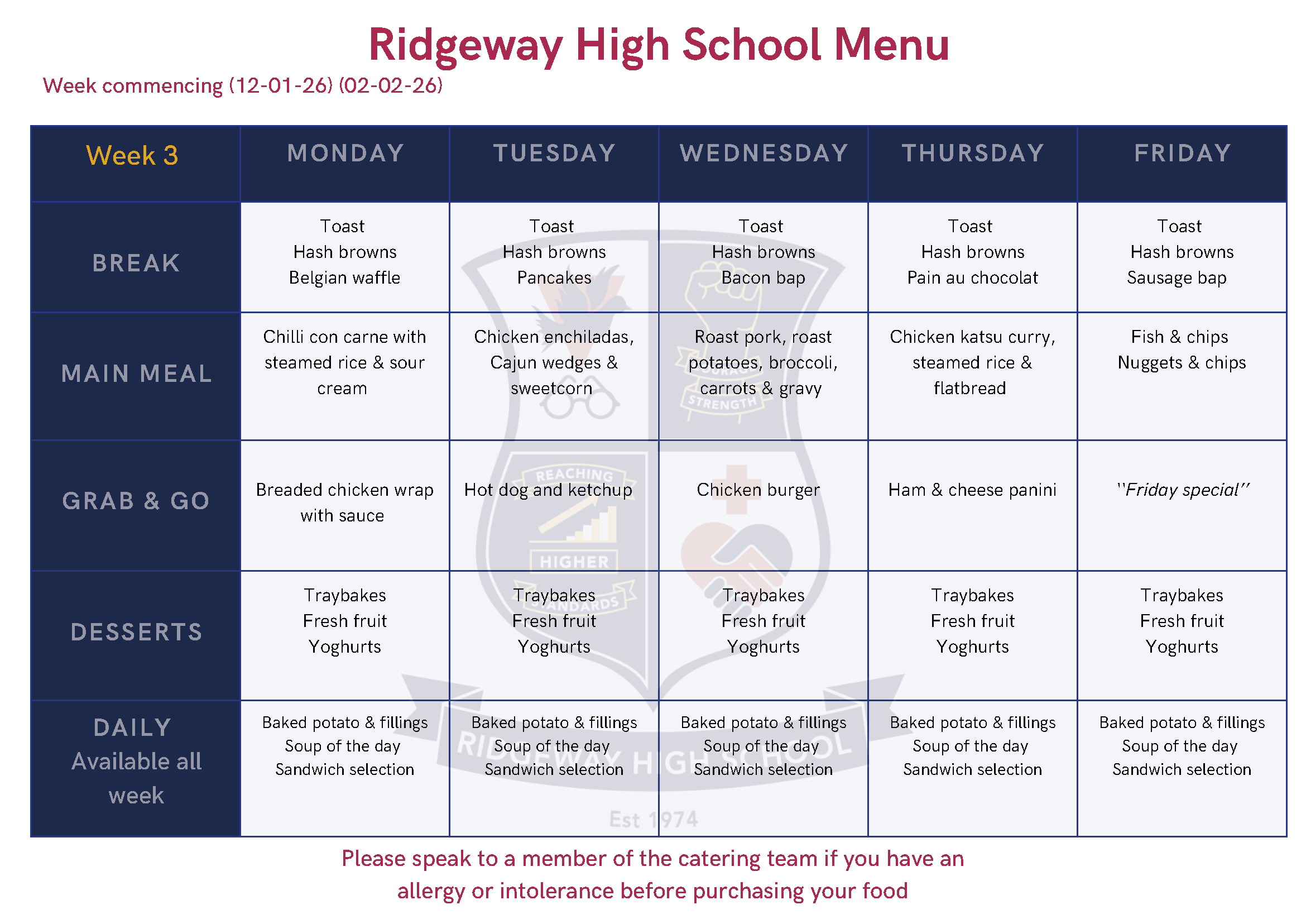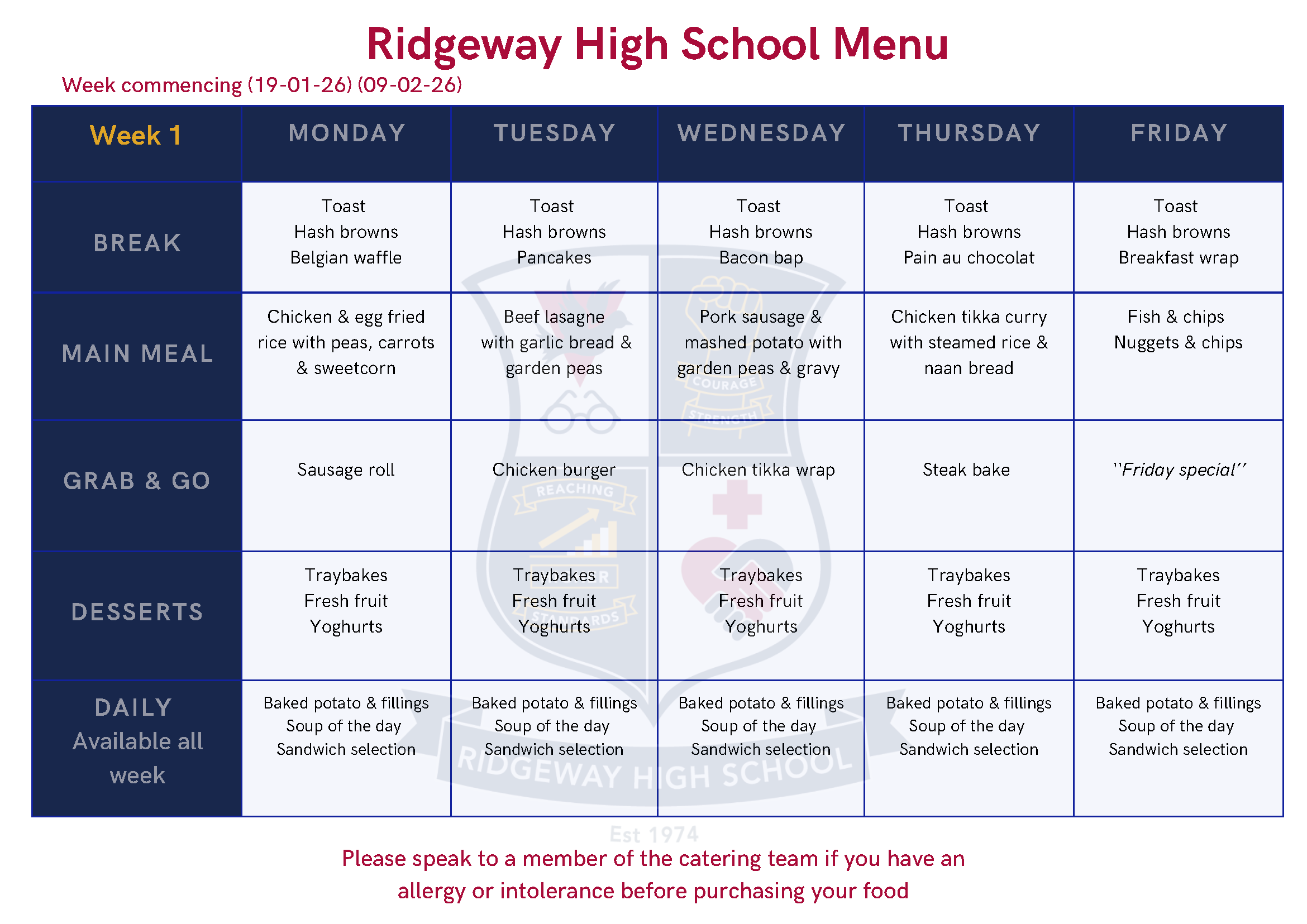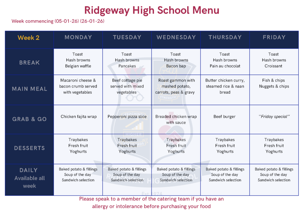 Click the link below the menus for information about free school meals.